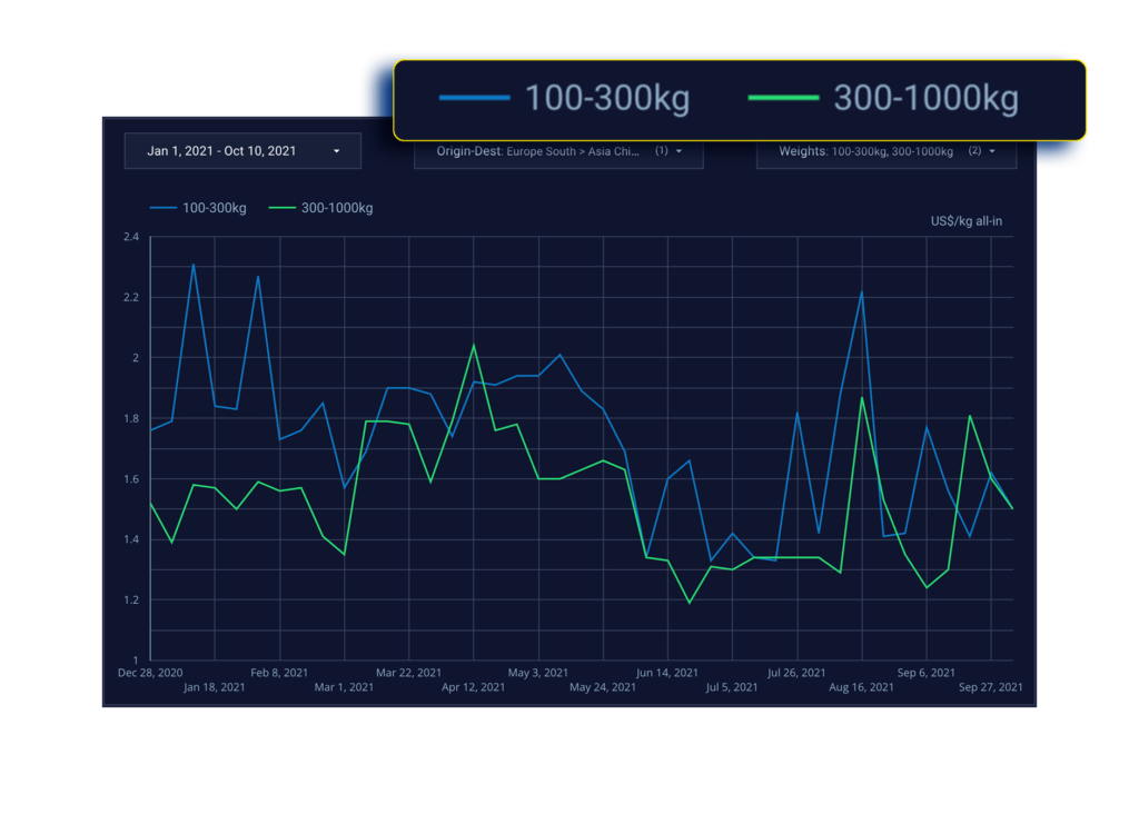 The FAX is in a free open beta phase, as additional lanes and features continue to be made available. It consists of a headline index of pricing across global air cargo lanes, weighted based on trade lane activity, as well as price comparisons across trade lanes, airport pairs, and weight breaks.